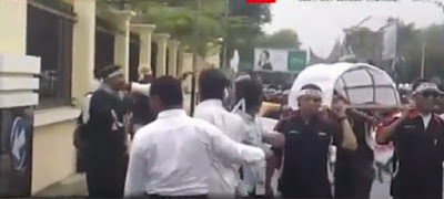 Para wartawan mengusung keranda mayat sebagai pertanda telah matinya UU Pers, sehingga dengan mudahnya kebebasan pers dikebiri oleh upaya-upaya bahkan tindak kriminalisasi oleh oknum aparat penegak hukum.